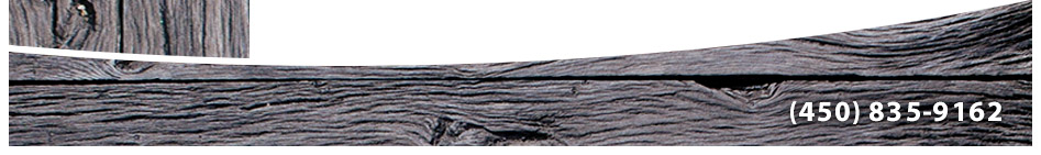 Cet endroit, cest la Ferme du Trappeur. Vous y trouverez des planches de tous les formats, faites du bois de vieilles et honorables granges, du bois dont la patine du temps a rendu lapparence unique et remarquable... Des poutres de couleurs introuvables dans le commerce et dune solidité à toute épreuve. Vous trouverez aussi chez-nous, des milliers dobjets dantiquités achetés à travers les rangs et les routes rurales de nombre de régions au Québec et ailleurs. Du bibelot à la charrue de laboureur, en passant par des chaises, des miroirs, des outils, des traîneaux, des bob-sleighs, etc. Aussi, si vous avez besoin de faire démolir une grange ou un hangar, de les faire rénover ou den faire bâtir des complètement neufs, nous avons lexpertise et les capacités logistiques et mécaniques pour ce faire. |